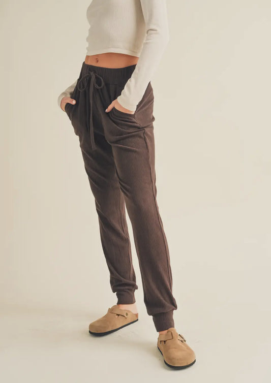 Chocolate Brown Brushed Rib Joggers