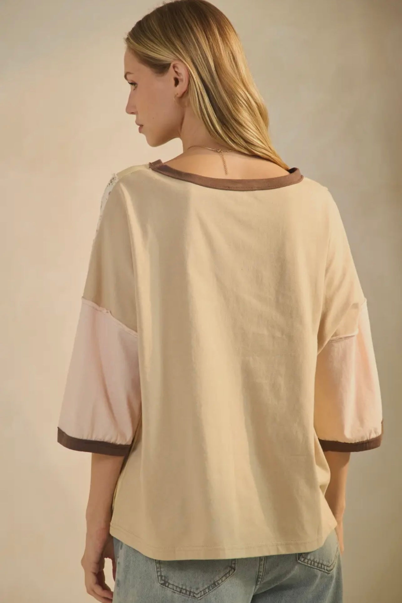 Color Blocked Floral Jersey Top